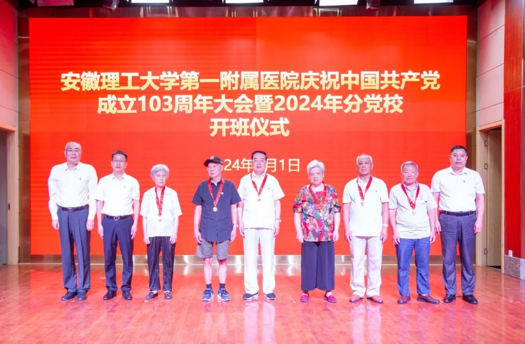 院领导为“光荣在党50年”老党员代表赵世培、张忠义、陈守英、王敏华、庞良田、蔡瑞君六位同志颁发纪念章,增强老党员们的在党荣誉感、归属感、使命感,汇聚医院高质量发展强大力量。老党员们纷纷表示牢记党员意识,永葆党员本色。祝福伟大的党、伟大的祖国繁荣昌盛、国泰民安!