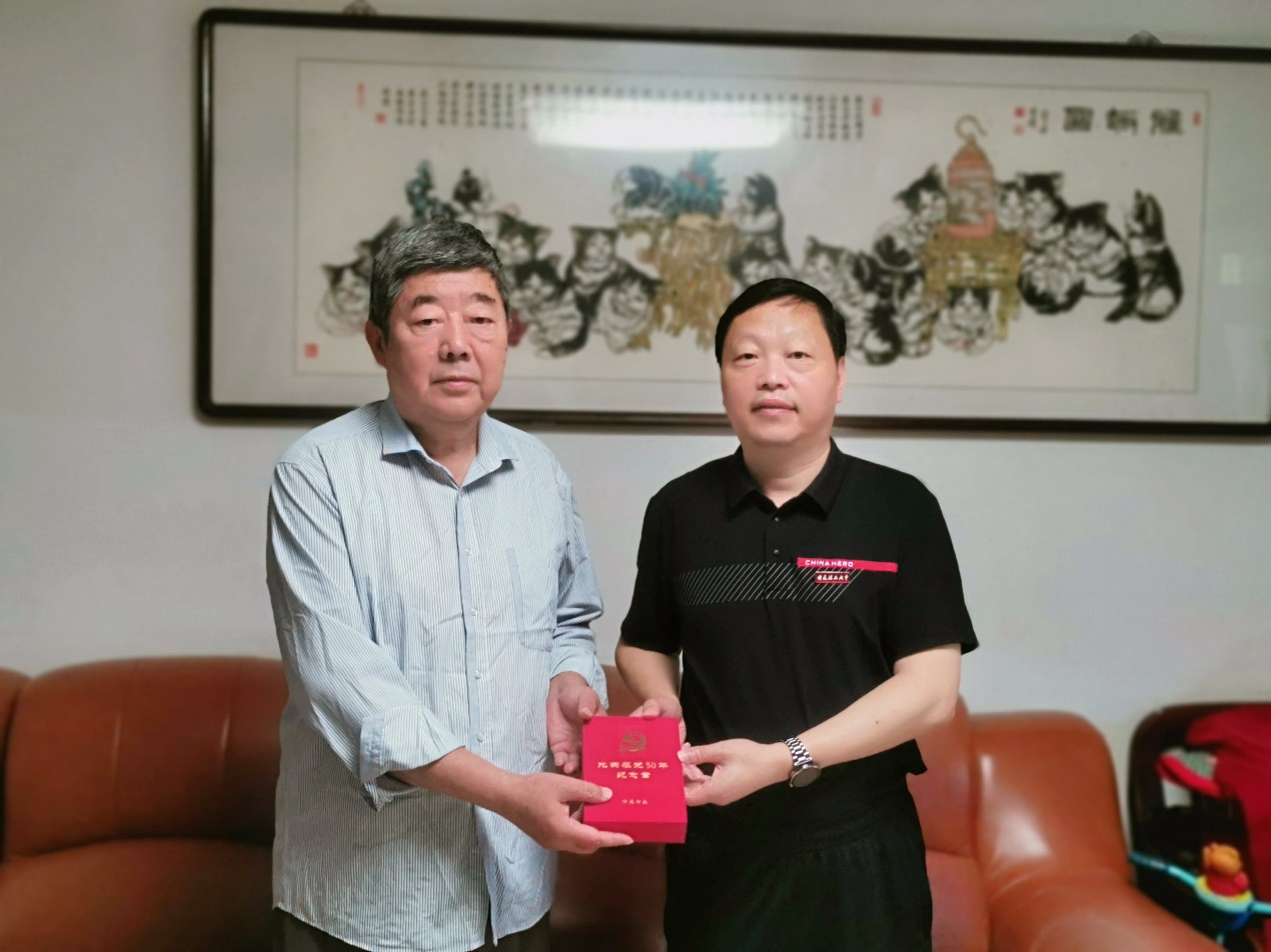 随后,王永祥还为其颁发了“光荣在党50年”纪念章。田显成表示,在建党103周年之际,能收到这样一份珍贵的荣誉十分开心,感谢组织的关心,祝伟大的祖国繁荣昌盛,祝学校“双一流”创建早日实现。