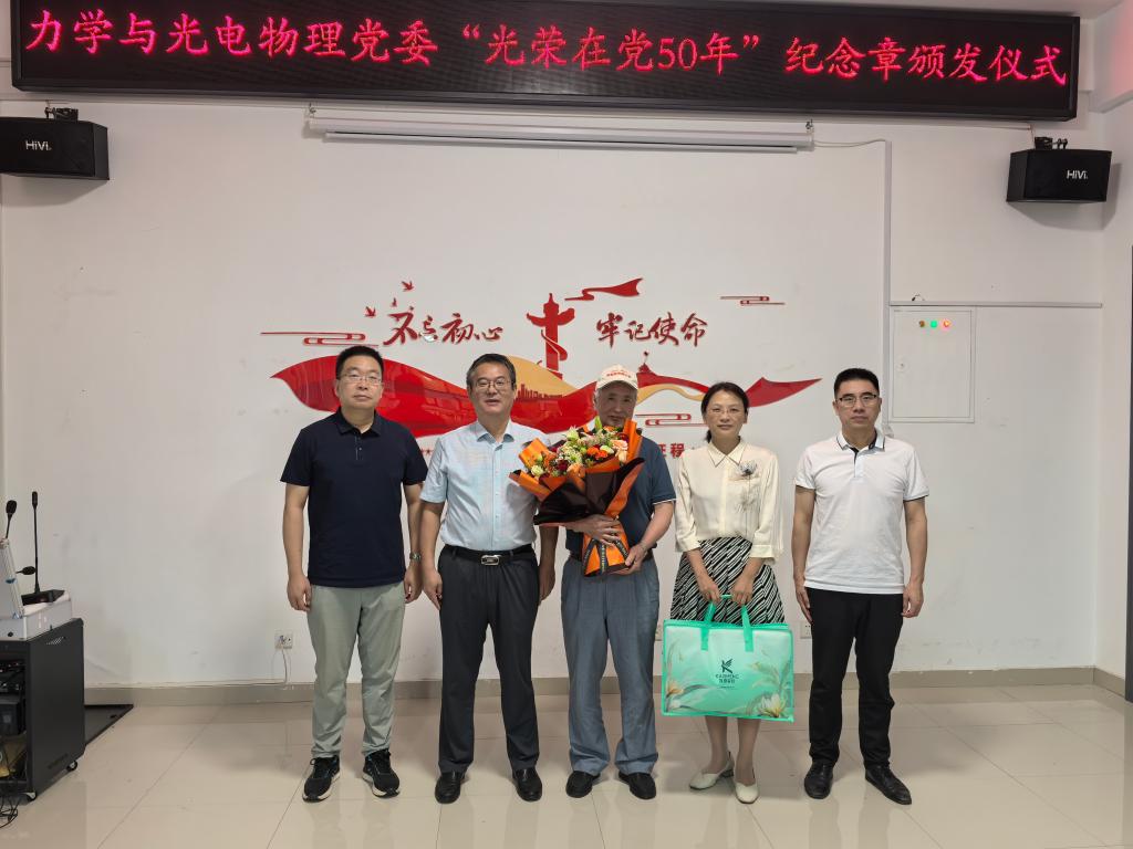 6月30日,力学与光电物理学院隆重举行“光荣在党50年”纪念章颁发仪式,向为党和教育事业奉献半生的郑传明同志授予荣誉勋章。学院领导班子、师生代表共同见证这一庄严时刻。