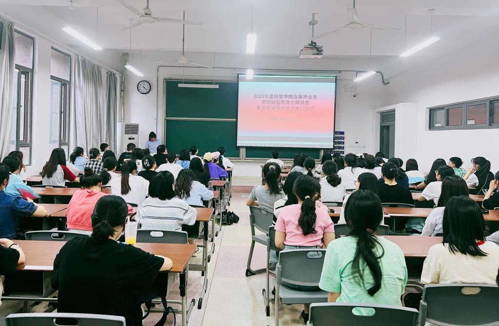 5月30日,经管学院面向有助学贷款的应届毕业生开展诚信教育主题讲座,强调加强防范金融诈骗、电信诈骗和不良校园贷等方面的意识,强调资助诚信的重要性,阐明失信的危害,嘱托同学们按时履约、严守资助诚信,并现场签订《2023届助学贷款毕业生诚信承诺书》。
