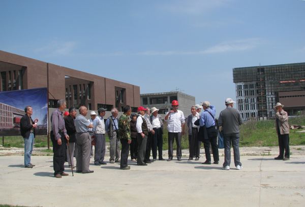 新校区建设指挥部工作人员向老党员们汇报了校园规划设计、园林景观绿化设计及市政道路设计,并用诙谐幽默的语言详细讲解了新校区施工进度、施工计划、建设资金等情况。随后,老党员们一行在新校区建设指挥部工作人员的陪同下,实地参观了新校区图书馆、公共实验楼、公共教学楼、行政楼等核心区域工程施工现场,亲身感受施工气氛,听取了相关建设进展情况的汇报。