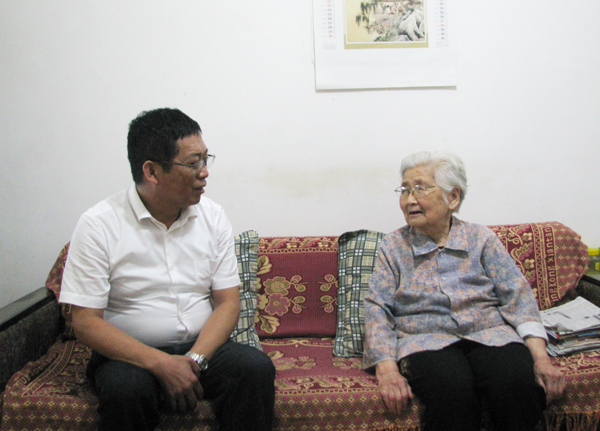 为纪念中国人民抗日战争暨世界反法西斯战争胜利70周年,并表达对抗战老战士的问候和关心,6月30日上午,校党委书记颜事龙走访慰问了我校抗战时期参加革命工作的离休老干部。师全智同志,91岁,1940年4月加入中国共产党;杨绮霞同志,90岁,1946年1月加入中国共产党。