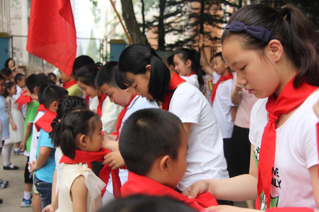 随着响亮的鼓乐声响起,入队仪式在附小校园拉开了帷幕。30多名准备入队的小学生精神饱满,意气风发,迈着铿锵有力的步伐来到队旗下,等待着庄严时刻的到来。高年级少先队员为新队员们佩戴上了鲜艳的红领巾。在阳光的映衬下,新队员们个个神采奕奕,他们在大队长带领下,握紧拳头,庄严宣誓,胸前飘动的红领巾让他们感到无比的幸福和自豪。