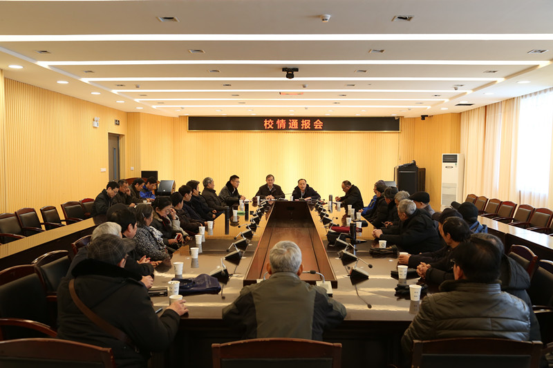 1月31日下午,学校在舜耕苑二楼会议室召开离退休老干部校情通报会。校党委书记郭永存,党委副书记、校长王其东,党委常委、纪委书记周峰,党委常委、副校长郑明东出席会议。离退休老干部代表及有关职能部门负责人参加会议。会议由郭永存主持。