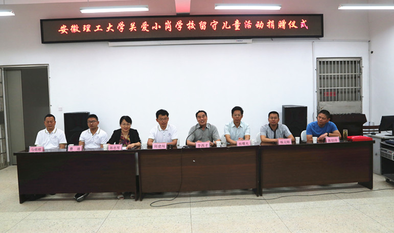 6月2日,伴着和煦温暖的阳光,凤阳县小岗学校的留守儿童们在校长邱建闯带领下,师生一行42人来到我校参观交流。校关工委常务副主任李西才亲切接见了他们。校工会为小岗学校师生们每人准备了一件印有安徽理工大学校徽的白色T恤衫,为每个留守儿童捐赠了安全防护书包和安全教育知识手册。