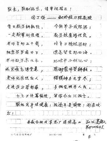 合肥叉车总厂退休高级工程师孙以嵩为程乃栋写的《园丁颂》