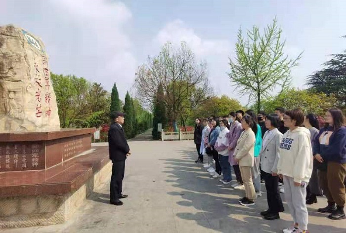 4月12日下午,学校共青团前往淮南新四军纪念林开展“学党史、强信念、跟党走”主题教育活动。校团委工作人员、学院团委负责人、校学生会成员代表共40余名师生共同参加活动。
