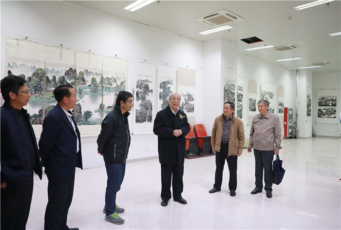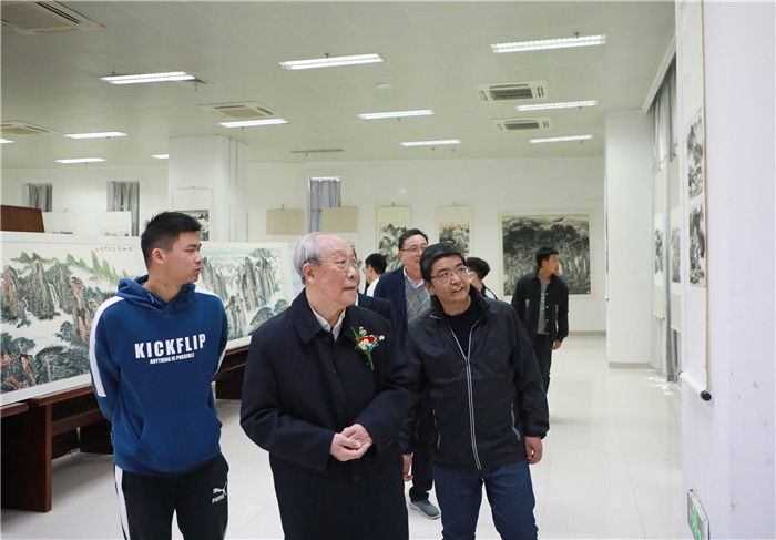 翰墨铭记辉煌历史,彩笔描画锦绣河山!11月16日,在全党深入推进党史学习教育,举国欢庆中国共产党成立100周年之际,在庆祝党的十九届六中全会和省第十一次党代会胜利召开,全面开启建设新阶段现代化美好安徽建设新征程的重要节点,由校党委宣传部、离退休工作处和校工会联合主办,图书馆协办,学校国画院承办的庆祝建党100周年离退休老干部吕玉忱书画展在校图书馆正式拉开帷幕。我校90岁高龄光荣在党70年的退休干部、安徽省美术家协会会员吕玉忱同志,用精心创作的100幅山水画作品,豪情满怀地向党的百年华诞献上一份精美的厚礼。校党委常委、副校长董雨现场参加了书画展开幕式。