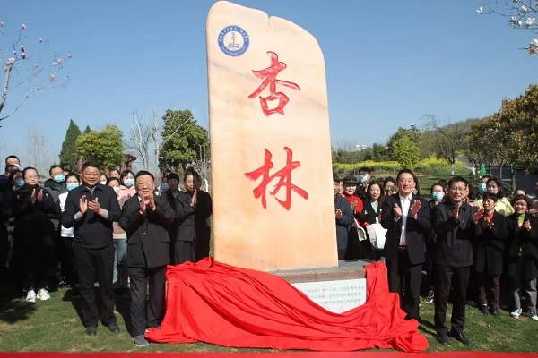 开园仪式上,魏耀民、杨立新、刘新矿、刘锦灿等为“杏林”揭牌。