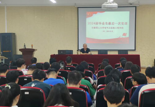 5月28日,电气与信息工程学院在励行楼B112报告厅举行2024届毕业生党员“最后一次党课”。校关工委胡光厚老师作了题为《坚持中国共产党领导,坚定信心一起向未来》的党课,学院2024届全体毕业生党员聆听了党课。