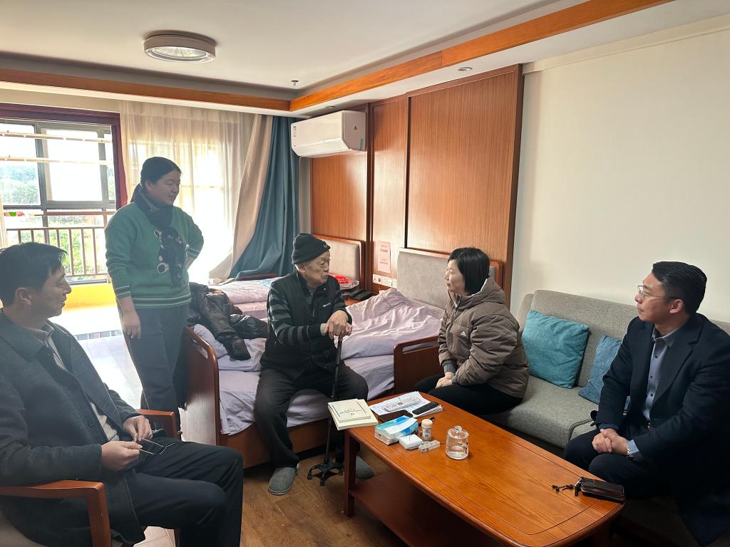 一行人带着饱含心意的慰问品和诚挚的新春祝福,分别来到退休老党员钱统钦、董成章、张兰鼎老师的家中或居住场所。每到一处,一行人都与老党员们热情握手,亲切地唠起家常,详细询问他们的身体状况和生活情况,从饮食起居到医疗保健,都一一关心到位。交谈中,老党员们满怀深情地回忆起在学院工作时的峥嵘岁月,分享着那些为教育事业拼搏奋斗的难忘故事。一行人还向老党员们通报了学校学院近年来取得的成绩,向老党员们曾经努力工作为学校学院建设发展打下的坚实基础和长期以来对学校学院建设发展的关心支持表示感谢,希望他们在保重身体的同时,能够一如既往地关心和支持学校学院工作。走访慰问同时,学院党委和退休党支部还“送学上门”,将党的创新理论书籍送到退休老党员手中。